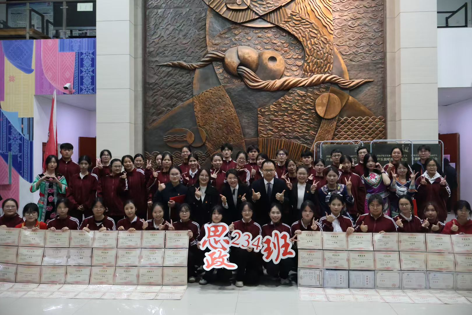 11月21日,在校级优秀班级展演评选中,马克思主义学院思政234班凭借突出的综合表现、鲜明的班级特色与积极的风貌脱颖而出,以第一名的成绩被评为河池学院“十佳先进班集体”。