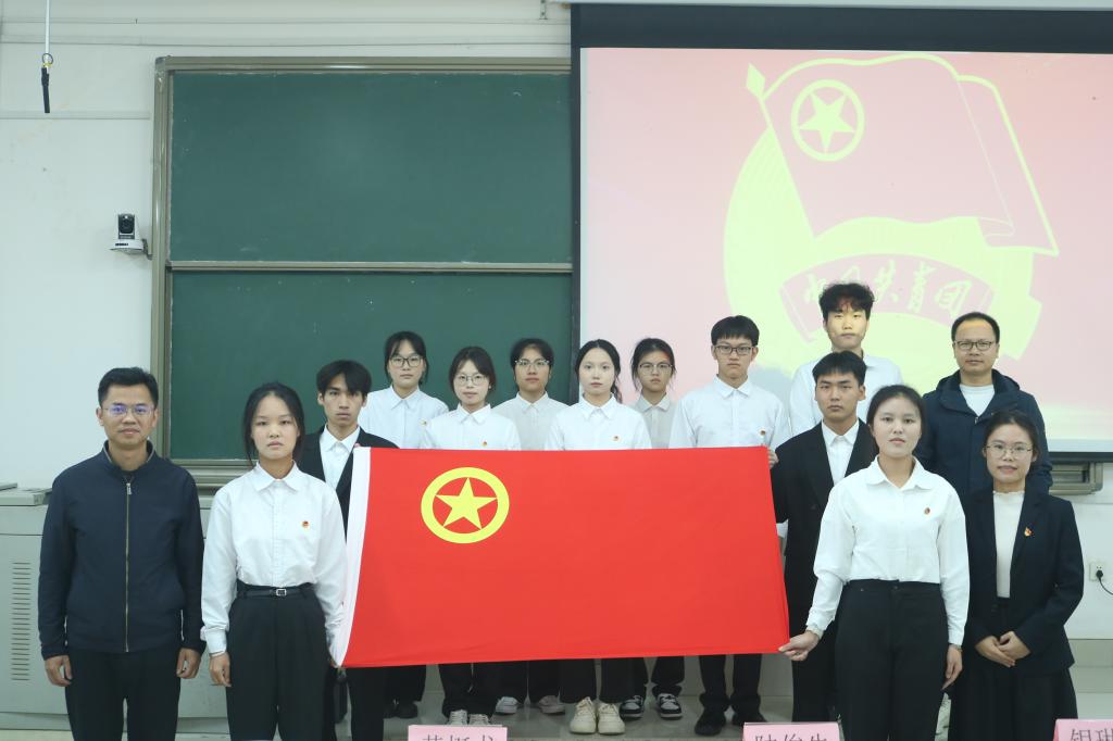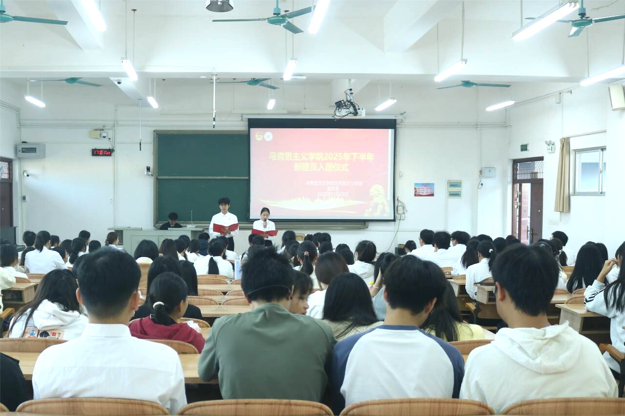 11月23日下午,河池学院马克思主义学院2025年下半年新团员入团仪式在弘毅楼2-401顺利举行。学院党委副书记陆俊先、团委书记黄挺龙、辅导员银琳杏、各班团员代表以及全体新发展团员参加会议。