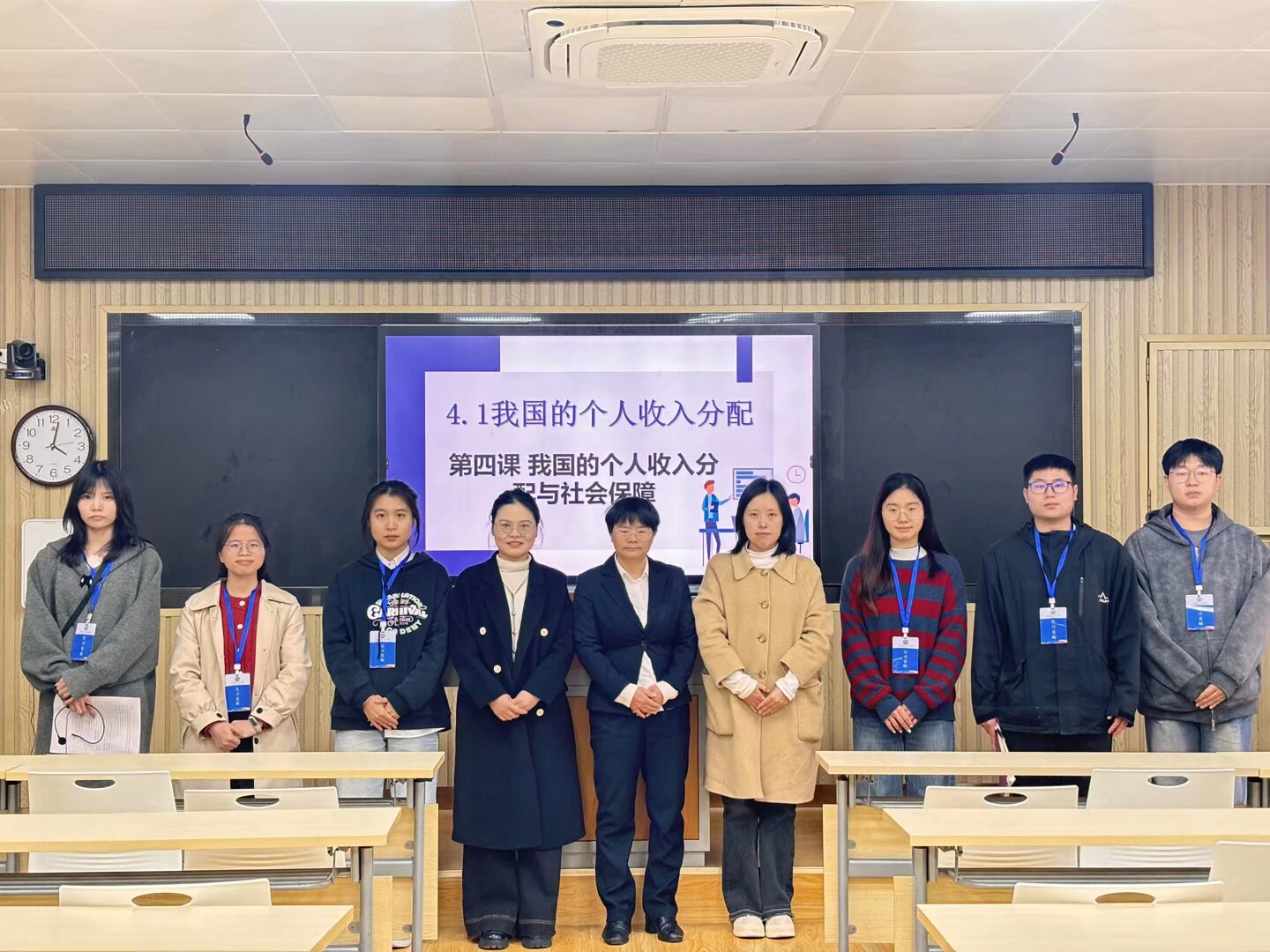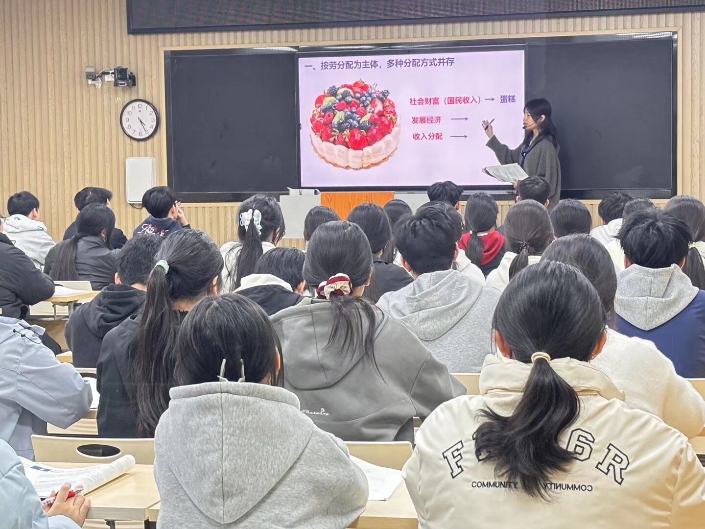 本次听课活动聚焦高中思想政治必修2《经济与社会》第4.1我国的收入分配这一核心内容。课堂上我院在河池市宜州区高级中学实习老师李梅囡巧妙结合生活实例,将抽象的经济理论转化为贴近学生生活的现实问题,通过课堂提问、小组讨论等互动形式,充分调动学生的积极性与参与度,让学生在思考与交流中理解我国收入分配制度的优越性。听课过程中,思政241班的同学们全身心投入,认真记录教学设计思路、课堂互动技巧与重难点突破方法。